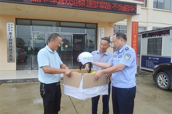 为进一步扩大“一盔一带”安全守护行动影响力,积极提升广大交通参与者自觉佩戴安全头盔,6月28日,常德交警直属二大队深入辖区芦荻山乡蓼子坪村开展免费捐赠安全头盔及交通安全宣传教育活动,助力人民群众安全出行。