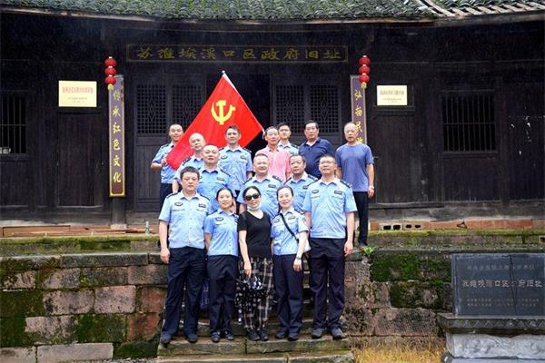 上午9时,虽然下着雨,却依然挡不住40余名党员同志风雨无阻的脚步。在大队教导员唐屹凡同志的带领下,大家唱着红军歌曲,伴随着迎风飘扬的党旗,沿着贺龙、肖克等革命先辈领导的红二、六军的行军路线,重走红军道路,追寻红军足迹。经过一个多小时的跋山涉水后,队伍来到了苏维埃溪口区旧址,聆听了苏维埃溪口区政府成立的光辉岁月,参观了一系列的历史画框,感受了红色岁月的激情。