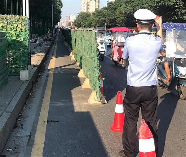 在施工前,副大队长伍开建反复深入实地查看,与工程项目负责人进行沟通交流,提前制定周密计划。施工期间,各区域执勤人员兵分三组,一组以警车流动巡逻管控形式,加强对主要路段的巡逻力度,严查占道行驶、逆向行驶、乱停乱放等交通违法行为,及时消除交通堵塞隐患;二组定岗指挥疏导车辆,大队把施工区域分割成不同片区,再由各部门定责定岗,于每日早中晚三个高峰时段加强路面指挥疏导,全力保障施工期间群众通畅出行;三组在施工路段摆放提示牌和警用锥形筒,喊话提示过往车辆减速慢行,结合通行需求选择合理出行路线,确保施工路段交通安全、畅通有序。