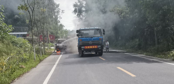 原来,8月6日10时许,益阳市桃江县公安局交警大队马迹塘中队民警王新民带领辅警在G536国道巡逻时,突然看见一台低速货车的车厢正冒浓烟。王新民等人立即停车协助驾驶员逃离驾驶室,同时安排辅警拦停路上行驶的车辆,自己则跑到旁边的加油站那灭火器前去灭火。但不到一分钟,车上明火增大,整车燃烧起来,让人无法靠近。随后,附近的一台洒水车驾驶员得知消息后立即驱车赶来帮忙灭火,约半小时后,明火扑灭,道路恢复交通。失火货车被烧毁,但因救助及时,本次事故中无人员伤亡。
