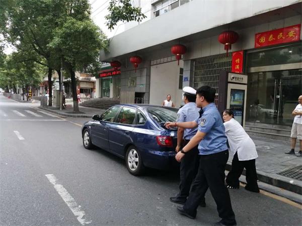 8月16日中午11时,吉首市公安局交通管理大队一中队交警巡逻至西环路人民银行路段时,发现一辆蓝色小轿车停留在道路中间不动,车辆前后也没有任何警示标志,过往车辆纷纷减速紧急避让,给行车安全带来隐患。见状,交警立即下车询问情况,原来是因车辆抛锚,突发状况让驾驶员手足无措慌了神,被迫停在了道路中间。