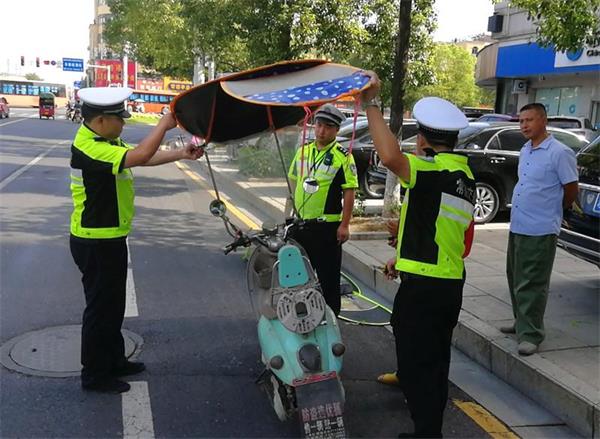 9月3日,常德公安交警直属四大队摩托车、电动车非法加装遮阳伞具专项整治“百日行动”正在如火如荼进行中。