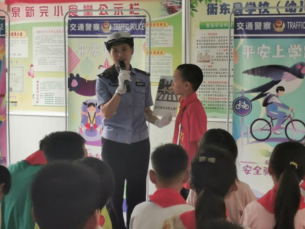 新学期开始,为切实提高中小学生文明交通意识,提升学生交通安全风险防范能力,9月4日,衡东县公安局交警大队走进泉新完小,为同学们带来了一堂“知危险、会避险”的交通安全体验课,并通过并通过新浪微博“一直播”平台同步进行现场直播。