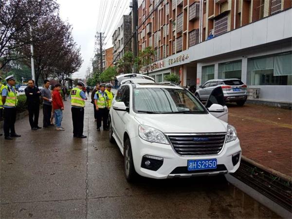 9月17日上午9时40分,桃江县公安局交警大队接到益阳市公安局交警支队指令:一台车牌为湘HS2950的长城越野车涉嫌套用他人机动车车牌,该车正在桃江县城行驶。接到指令后,该大队立即派警至公路巡逻中队,民警随后在桃江县城道路上开展地毯式搜索。8分钟后,民警在桃江县城芙蓉西路发现该车踪迹,民警立即对该车进行查扣。