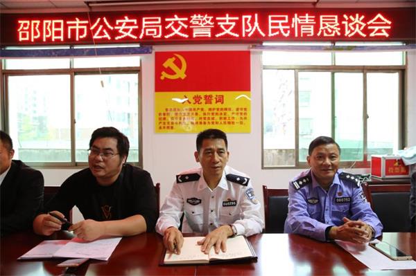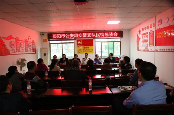 9月24日下午,邵阳市公安局交警支队党委书记、支队长刘定湘,副支队长吕绍斌,以及支队行财科、政工科等部门负责人,深入双清区新华社区,与群众代表面对面召开恳谈会,实对实地解决群众提出的相关问题。