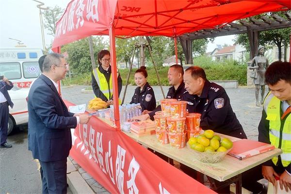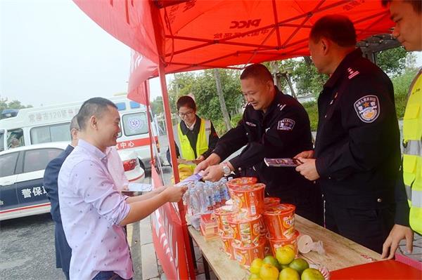 9月30日,国庆出游高峰前夕,常德市公安局交警支队联合人保财险常德市分公司、医疗卫健部门在市城区二广高速芦荻山互通出入口,开展“警保联动新服务,伴您国庆放心游”护航活动,为广大出行人员提供道路安全救援、旅途生活帮助、保险理赔咨询及事故快处等便民服务保障。