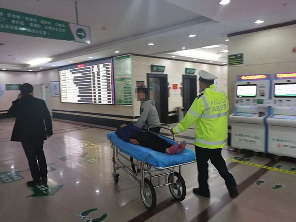 10月2日12时50分,一辆粤L小型轿车往北行驶至许广高速东湖路段时不慎发生交通事故,车辆安全气囊爆开。因妻子雷某有心脏病史,安全气囊冲击引发昏厥,高某急得是手足无措,只记得打电话报警。蒸湘大队民警到达现场后立即展开救援,因距离市区远,民警唐欣紧急联系东湖卫生院先行抢救。谁知,东湖卫生院唯一一台急救车已开往市区送治病人。情况紧急,高速交警快速联系东湖卫生院医护人员驾民用车赶到东湖收费站,并由东湖路政队牵引至事故地点。东湖卫生院医生、护士到达后,紧急输液并给病人服用速效救心丸,半小时后市中心医院救护车到达现场将雷某接走。因送治及时,目前雷某已转危为安。事后,高某不住的向民警表示感谢。