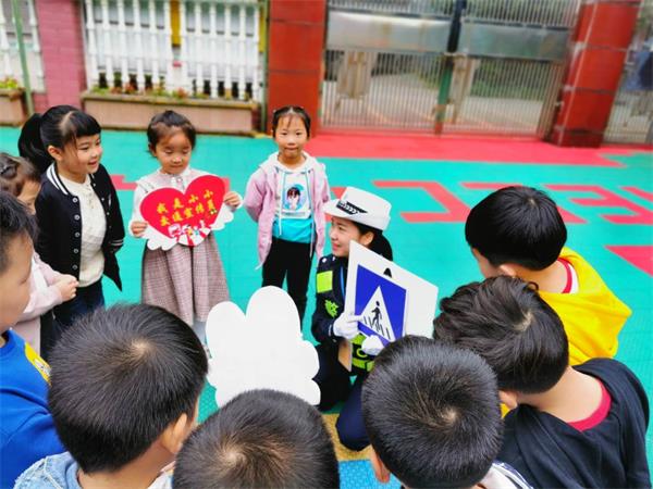 活动中,针对幼儿园学生年龄较小、接受能力有限的实际,宣讲队员通过“红灯停、绿灯行、黄灯亮了等一等”、“斑马线生命线,过马路前看一看”等朗朗上口的宣传歌谣对孩子们开展宣传教育。通过通俗易懂的语言提升幼儿园小朋友们的交通安全意识,学会在日常生活中该如何正确的行走、安全过马路以及乘车、上下车的注意事项。