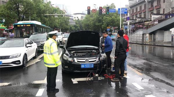 帮群众解决困难从不停歇。10月16日一大早,交警周欢、罗维又开始了他们新一轮的工作。上午10点左右,正在245队十字路口巡逻的时,发现一辆黑色小轿车停在道路左转弯处迟迟不开走,两人迅速跑上前查看并询问原因。原来是车辆半路无故熄火,驾驶员在尝试好几次后依然无法启动。此时正值午高峰缓冲期,眼看车流量积压越来越多,为了不影响其他车辆的正常通行,周欢、罗维一边上前协助群众,合力将车辆推不影响交通的安全区域,联系修理厂等待救援车辆;另一边指挥“故障车”后的车辆提前绕行,上路行驶之前一定仔细检查车况。经过大家的共同努力,故障车消除安全隐患,道路也得到畅通,驾驶员握着交警的手表示感谢。