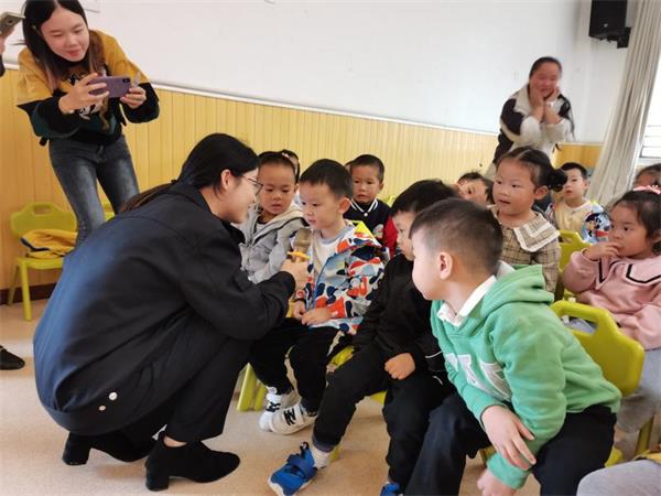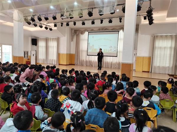 活动在园内三楼多功能厅举行,安宣办宣传专干通过向师生们发放宣教资料、多媒体PPT教学、以及引导小朋友们上台身穿反光背心、玩拼图游戏等方式,教孩子们学习基础交通安全知识,给350名师生们上了一堂生动有趣的交通法规和安全知识教育课。