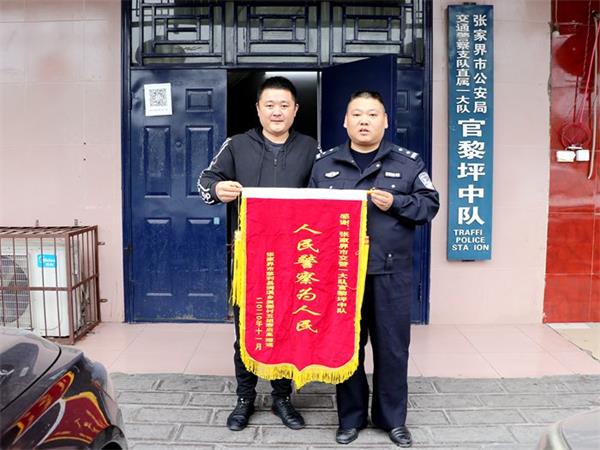 “感谢两位警官,救了我,也救了小孩!”11月3日9时许,唐启高手持“人民警察为人民”的锦旗,来到张家界市公安交警支队直属一大队官黎坪中队,用最质朴的方式向该中队民警吕红星、辅警李鹏征表达谢意。