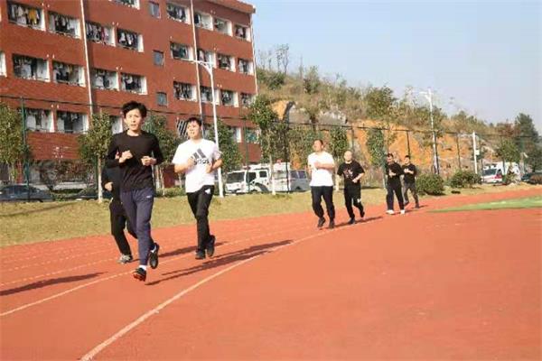 田径场上,当裁判员宣布体能训练开始时,参加跑步体能训练的全体辅警们,一个个飞离起点,奔向终点。高强度的长跑训练使他们喘不过气来,但大家个个精神抖擞,都发挥出不屈不挠、顽强拼搏的体育精神参加训练。