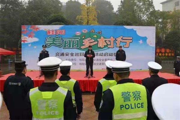 仪式上,交警大队长欧阳文林宣读了《桂阳县“美丽乡村行”交通安全巡回宣传活动实施方案》,交通文明劝导员代表进行了发言。