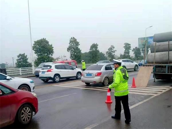 12月9日上午8时50分许,常德市公安局交警支队直属二大队四中队民警巡逻至市城区沅水二桥路段时,发现路面上车辆行驶缓慢,道路出现拥堵情况。执勤民警姚吉权立即上前查看,发现一辆满载建材的货车因故障停在道路中间。此时正值早高峰,所在道路车流量大,故障货车占用一条行车道,存在极大的安全隐患。
