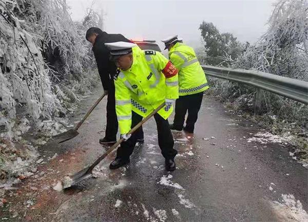 此外,为切实应对低温雨雪天气带来的交通不便,桂阳县公安交警大队还通过抖音、微信、微博等新媒体平台发布道路结冰预警信息,并组织巡逻,加强结冰路段值守执勤,最大限度地将警力摆在路面,护卫群众出行安全。