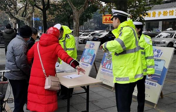 12月18日,常德公安交警直属一大队与市委政法委机关志愿者、外卖小哥志愿者等在辖区武陵大道宏大路口开展“众创平安”暨“122”交通安全集中宣传活动。