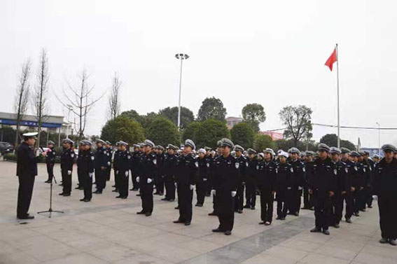 上午7时45分,民警、辅警在大队前坪整装列队。8时许,升国旗仪式正式开始,国旗护卫手昂首挺胸,迈着整齐有力的步伐,护卫着国旗走向升旗台。伴随着嘹亮的国歌声响起,鲜艳的五星红旗迎着朝阳冉冉升起。国旗下,全体人员神情庄重,向国旗敬礼。