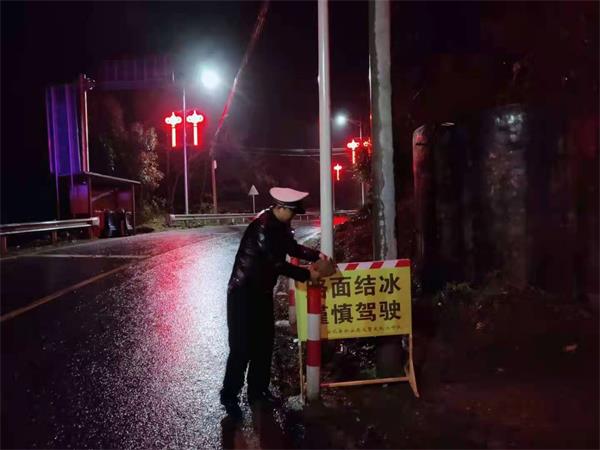 夜巡过程中,各组警力按照“不错漏一地、不放过一处”的原则,着重对桥梁、隧道、急弯、陡坡、以及高海拔路段的路面结冰情况进行勘查,并在高风险路段设置了20余块警示标牌,提示过往驾驶员谨慎驾驶,起到了降低交通事故发案几率的效果。与此同时,大队进一步加强与高警部门的信息沟通,及时掌握高速公路交通管制信息,全面做好“两客一危”等重点车辆的分流、劝导等工作。当晚,大队共出动警力100余人次,夜巡里程超过200公里,有力确保了辖区低温寒潮首日道路交通安畅有序。