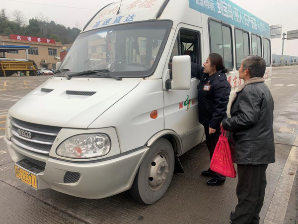 李嘉按照老人手上的名片与司机进行沟通,了解到这趟车每天只发一次,立即询问发车时间,怎样才能坐到车。司机说,老人可以赶往热市服务区等待上车,那里会有座位让老人顺利到家。