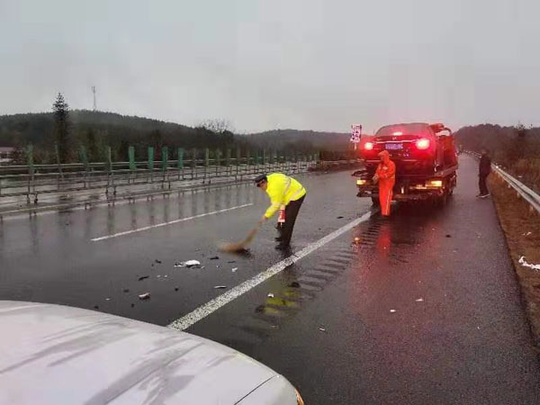 1月11日清晨6点30分左右,湖南省高速公路集团有限公司株洲管理处攸县东路政大队值班室接电话称在G0422武深高速醴茶段k397+200m南往北方向有小车追尾,请求路政人员前往协助处理。