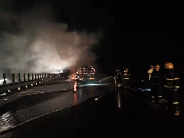 1月15日0时55分,湖南省高速公路集团有限公司常德管理处沅陵路政大队接到电话称,在杭瑞高速沅陵段西往东方向1148+400处一辆货车发生自燃,现场情况紧急,急需救援。