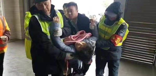 突然人群中传来一声惊呼,把正在不远处清扫车坪的物业经理黄亚平吓了一跳,他连忙丟开手中的工具跑过去。只见一名身着紫色棉衣的瘦弱妇女,脸色苍白的倒在地上痛苦的呻吟着。此刻处于山区的宜章西服务区室外温度只有1-2度,情况紧急,黄亚平立即叫来保安和家属一起把女子抬入了服务区的母婴室的沙发,并打开了取暖设备,询问家属情况。