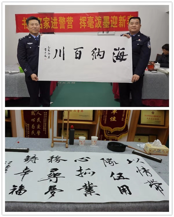 此次活动邀请了省政法系统书画诗词研究会副会长 、原省公安厅副巡视员、中国书法家协会会员杨建杰,中国书法家协会会员李哲、贺子文,湖南省美术家协会会员聂之鸿、李日标等知名书法家、画家,在支队警营文化室现场挥毫泼墨。