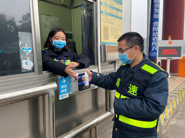 应对新型冠状病毒感染肺炎疫情,目前全体一线员工已经统一佩戴口罩,并号召大家务必做到勤通风、勤洗手、戴口罩、不扎堆,实时做好自身防范。在收费站及服务区加强人员配备、体温检测设备、公共重点区域消毒消杀等措施,坚决遏制疫情传播。