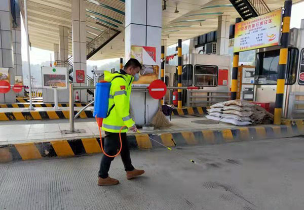 面对复杂多变的疫情发展形势,双峰收费站值班员陈恒始终绷着一根弦,连日来的晴好天气,并没有让他有片刻松懈。春节期间,除了正常值班值守,其余时间,陈恒团结党员群众一道投身到消毒抗疫战斗中,驻守在一线,组织职工加频加密擦拭清洗岗亭窗口、工作台面、座椅扶手等区域,全方位地消杀病毒。