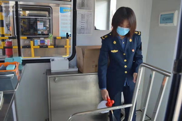 “物资到位,防范才能到位,职工们才能更好的保护自己,我能为他们做的就只有这些。”到站后靳芳马不停蹄将物资发放至中心站各站点职工手中,先亲自教值班的行政人员如何分配防疫物资,然后到现场示范消毒方式,确认大家掌握了正确的使用方法才稍稍放下心来。