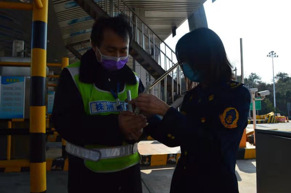 “近几天是疫情暴露高发期,大家如有身体不适的,一定要及时测量体温,及时向站部汇报。不要造成不必要的恐慌,收费站是窗口单位,每个收费员一定要要做好防控工作。”从1月22日开始抗疫到今天,靳芳就在除夕当天到现在一直在站部上班,没回家。23日上午回家看了一眼正在读初中的独生子午饭都没来得及吃就又从长沙驱车赶回了站里并带回了跑遍长沙十多个药店才购置到的第二批珍贵的防疫物资。
