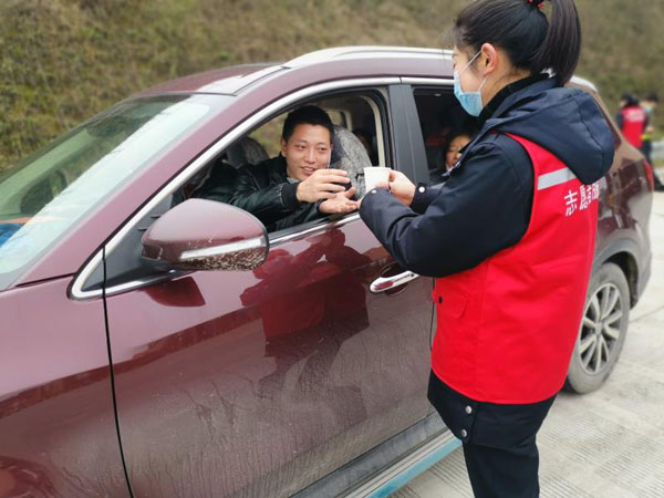 “现进入春运车流返程时期,我们志愿者们对过往的司乘人员进行多宣传,正确认识疫情,加强疫情防护知识,做好防范工作,为司乘人员提供安全可靠的高速通行环境和温馨的服务。”益娄片区团支部书记田乐说。