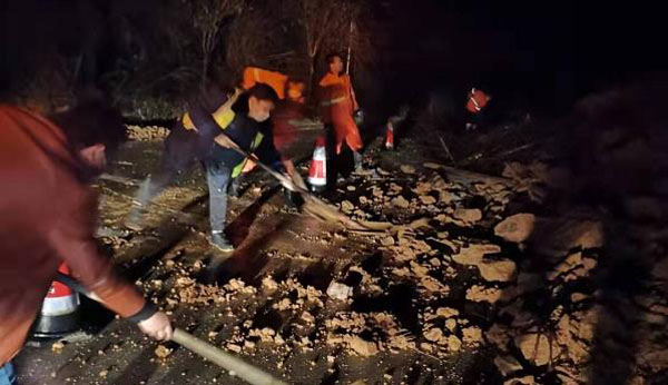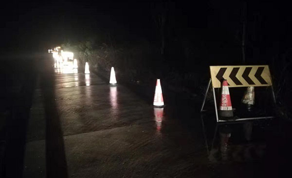 到达现场后,抢险人员兵分两路,一组负责对塌方区域增设标志牌,摆放安全锥桶,做好安全围挡和安全警示工作;另一组负责用铁锹、锄头等工具清理垮塌在路上的淤泥和石头。经过约2个小时的冒雨奋战,抢险人员在塌方区域设立警示标牌4块,摆放锥桶100余个,将塌落在路面的泥石予以清除,确保道路能够通行。由于处置及时,未造成车辆堵塞和引发安全事故。