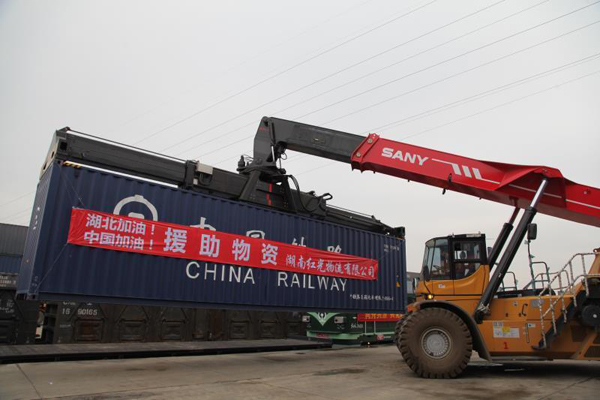 承担捐赠物资运输任务的铁路部门积极行动,广铁集团长沙货运中心衡阳物流车间头一天得知运输信息后,特事特办,为抗疫物资运输开辟绿色通道,积极向货运中心调度申请集装箱,当天下午,从株洲北站调运3个空箱。2月19日早上7点钟,组织党员突击队员进行装运,通过2个多小时的抢装抢运,确保了4个集装箱装箱到位,及时发车。