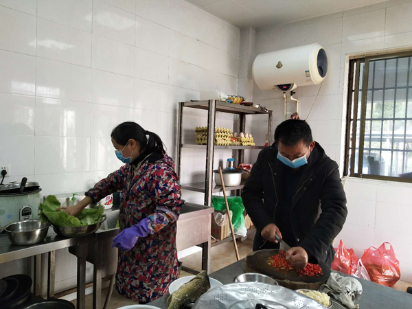疫情期间驻站员工增加到近30个,各个环节的消杀工作要求严格,这大大增加了后厨的工作量。在重庆工作了大半年没有见面的儿子沈磊,回来就被陈新连拉到了她的后勤队伍中,每天负责厨房的清扫,用具消毒,分餐。 为了让大家吃的更健康,更丰富。天气好的时候, 他们一家三口在院子里的菜地忙活 ,种菜、浇水......自己种的蔬菜有富余就会被收割下来洗干净,切好,晒干,变成可口的下饭菜。由于很多商家歇业造成部分物资短缺,陈新连和老公沈谆华走街串巷的找食材,为了保证食材的新鲜,总是天刚亮就出门了,连供货商都开玩笑说“真是早起的鸟儿有虫吃呀”!