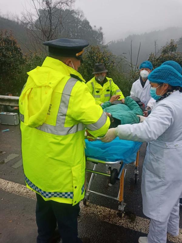 见此情形,路政员迅速展开救援工作,立即拨打120急救电话,尽力安抚车上受伤人员情绪,并在事故后方摆放安全锥筒,鸣车示警,维护现场通行秩序,防止二次事故发生。