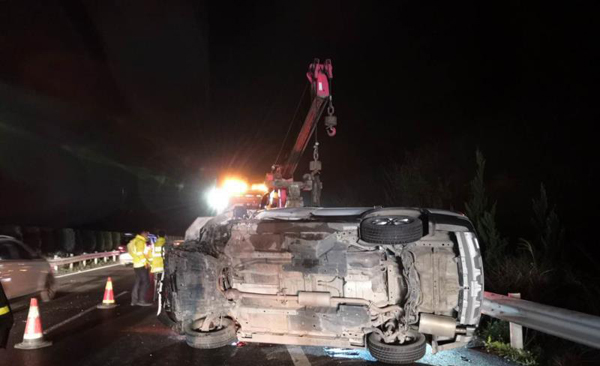 为避免二次事故,路政员立即对事故现场进行管控,在事故车辆后方做好安全警示工作,将巡逻车停在事故车辆后方,拉响车载警报器示警,并对事故现场进行勘察和清扫,配合高速交警疏导交通,维护现场通行秩序。在120救护车到达事故现场,120救护人员检查司机伤势后,路政员协助医护人员将受伤的乘客抬上担架,受伤人员被安全转至医院。同时,路政员与高速交警、清障施救工作人员将超车道上的车辆合力推至路肩。
