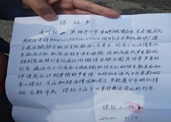 3月13日上午9时,任某在其父亲的陪同下来到了公安机关自首,在市公安局巡特警支队综合执法一大队办公室,付警官调取了相关的视频和证据资料,严肃地对任某进行了法律法规教育,车主任某认识到事情的严重性,承认了驾驶该车进行非法营运的事实。在公安干警和交通执法人员面前,任某再次诚恳道歉,并写出了保证书,不再从事非法营运,并撤销了朋友圈的视频与照片。目前该非法营运车辆已经暂扣,将会依法依规进行处理。