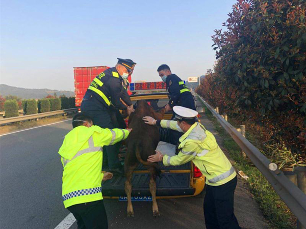 3月14日下午5时左右,长浏路政大队接警称,在浏洪高速公路浏阳南收费站附近西往东方向,有一头小黄牛正在高速公路上“溜达”。当前正是复工返程车流高峰期,一旦过往车辆与黄牛相撞,后果不堪设想。长浏大队值班路政员立即赶往现场,同时通知新创建公司道路管理部门。