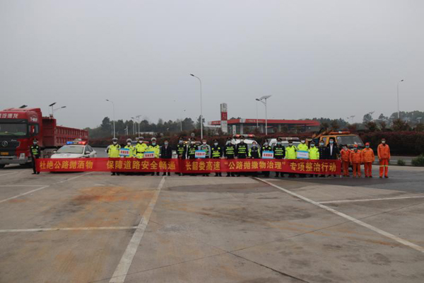 2020年3月23日下午14时30许,高速路政长沙支队花明楼大队联合高警局道林大队,联合高警局灰汤大队、宁乡市综合执法局、长韶娄高速公路有限公司,在长芷高速K24西往东方向,花明楼服务区开展主题为“安全保畅,路面抛洒物专项整治行动”。