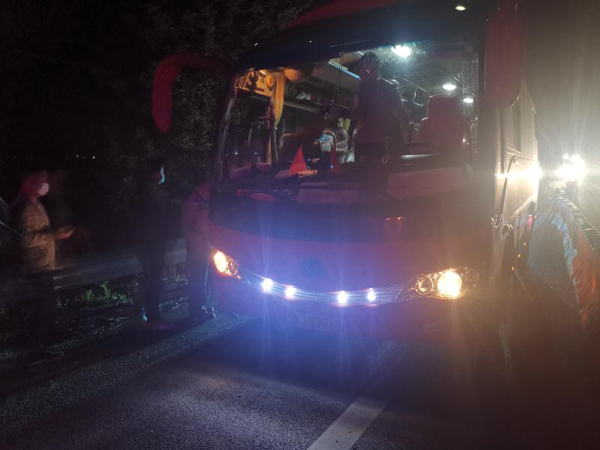 3月31日晚,一辆从湖北黄冈开往广西南宁的疫情复工大巴车在途经G0421许广高速岳望段时突发故障,致使车上27名乘客滞留受困。湖南高速公路集团有限公司岳阳分公司湘阴东路政大队迅速反应,联勤联动妥善做好现场安抚救助工作,确保了高速公路安全畅通及车内人员的生命财产安全。