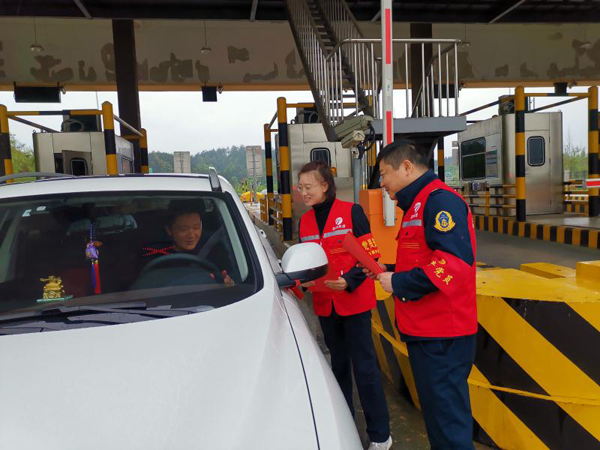 4月21日,益阳分公司益娄片区党支部组织全体党员开展“社会主义核心价值观主题实践教育月”主题活动。在集中学习《习近平谈治国理政》第一卷、第二卷、《习近平新时代中国特色社会主义思想学习纲要》等理论文献后,全体党员干部来到横市收费站收费广场,为过往司乘人员发放《文明交通绿色出行倡议书》,同时积极为司乘人员宣传疫情防控知识、提供便民服务等,倡导广大职工和司乘人员积极践行社会主义核心价值观,传播交通行业正能量,树立行业新风,营造文明出行的高速公路新风貌。