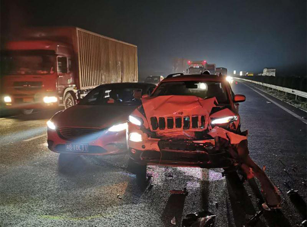 杨贤和郁挺第一时间对现场进行了安全管控,将受损严重的4台车转移到应急车道,仅用了5分钟就让车道恢复畅通。19台追尾车辆最后在交警的引路下,开往最近的收费站进行事故判定处理。
