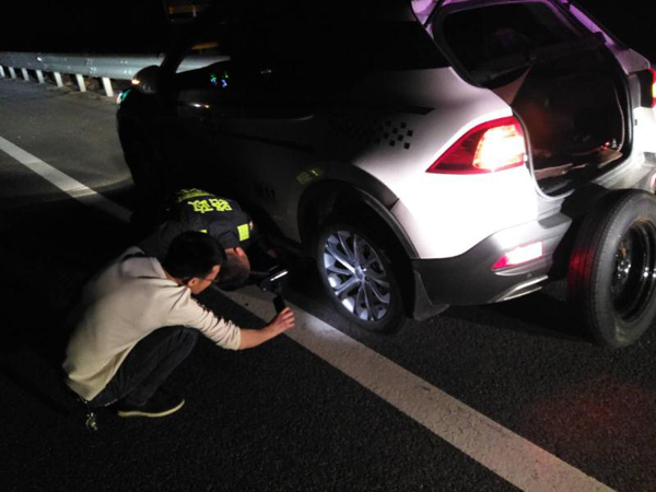 5月1日深夜0时49分,岳阳东路政大队值班室响起了一阵急促的电话铃声。“我的车爆胎了,车上没有携带修理工具,请你们来帮帮我。”求助的车主十分焦急,他告诉路政人员,他所处的位置在西往东金屋互通匝道出口。