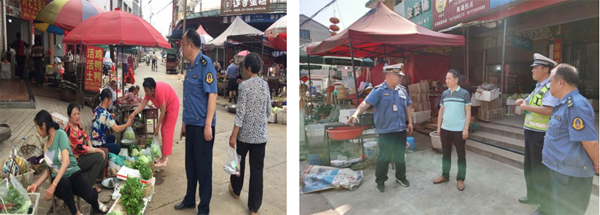 图:“五一”期间,路政执法人员对琼湖街道马路市场反弹现象进行强力整治,有效恢复马路市场秩序。