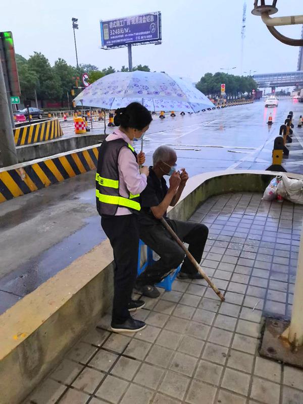 “老人家,您要去哪里呀?”钟蓉问,老人只是听着,吱吱唔唔半天也说不出话,此时正是车流高峰期,为了安全起见,钟蓉只好将老人搀扶到车道安全岛内,耐心询问后得知,老人今年70多岁了,患有老年痴呆,有时清醒有时迷糊,腿也受过伤,走路一瘸一拐的,右眼只有微弱的视力,左眼完全看不见,老人经常在家附近捡废品维持生计,今早老人外出捡废品,不知怎么的就走远了,找不到回家的路了,走着走着就到了收费站。