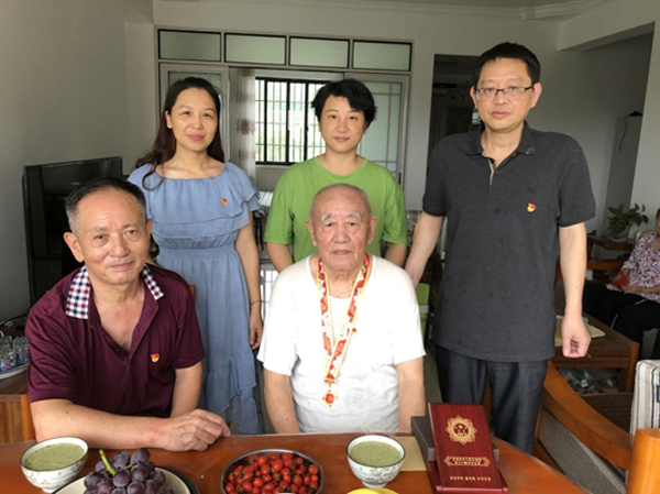 7月1日上午,安化县交通运输局机关党委一行来到离休老干部、老党员刘儒珍家中,向他带去组织的关怀和节日的问候。走进刘老位于东坪镇莲馨交院的家中,刘儒珍老人早已在家等候,今年已经九十二岁高龄的他,身体硬朗,思维口齿清楚。建国前作为地下党员,刘老在时任中共安化工委书记熊邵安的领导下为安化的解放与建设作出了卓越的贡献,并在庆祝新中国成立七十周年时获得由中共中央、国务院、中央军委联合颁发的荣誉纪念奖章。在老人家九十多年的人生岁月中,刘老经历了不少逆境挫折,但是,他始终保持乐观豁达的心态,坚持自己的信仰,始终做到跟党走、听党的话。在与工作人员的交谈中,刘老对总书记习近平赞美之情溢于言表,“习总书记现在搞反腐倡廉、扫黑除恶、精准扶贫是功在当代利在千秋的大好事,有这么好的国家领袖,这是国家和人民的福气”。他希望年轻的干部一定要淡泊名利,扎扎实实干好工作,保持学习的习惯,把为人民服务的宗旨要牢记心中。刘老虽然九十多岁的高龄,但仍不忘坚持学习写作,现场展示了他去年为庆祝建国七十周年题写的诗“发奋图强七十年,中华大地换新天。颗颗卫星发上天,工农发展齐向前。军强国富民生旺,脱贫攻坚奔小康。”