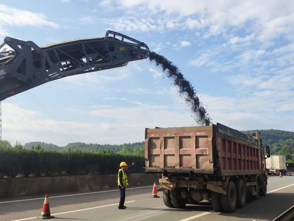 不知何时,朝阳已悄悄从东边升起,工人们来不及欣赏这旭日初升的美景,正埋头于各自的工作岗位上。只见,大型铣刨机冲锋在前,一马当先,刨去旧路面;运输车将铣刨出的废料快速运出施工现场;工人在清扫机的配合下迅速将作业区清理干净;摊铺机跟进将热腾腾的沥青拌合料摊铺至路面,养护工人手持铁铲、耙子随时对高达150℃的路面沥青拌合料进行修整;压路机紧随其后反复辗压。整个路面一幅热闹非凡的景象。
