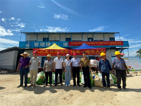高温酷暑下,平益高速益阳段18标的劳动者们正满员满岗、大干快上,抓紧时间保进度,8月8日上午益阳市总工会及益阳交通运输产业工会来到建设一线,给他们送去绿豆等解暑降温物资。交通建设一线的工人们纷纷表示,现在是施工好时机,留点汗水加快建设速度是值得的,力争超额完成全年度目标任务。