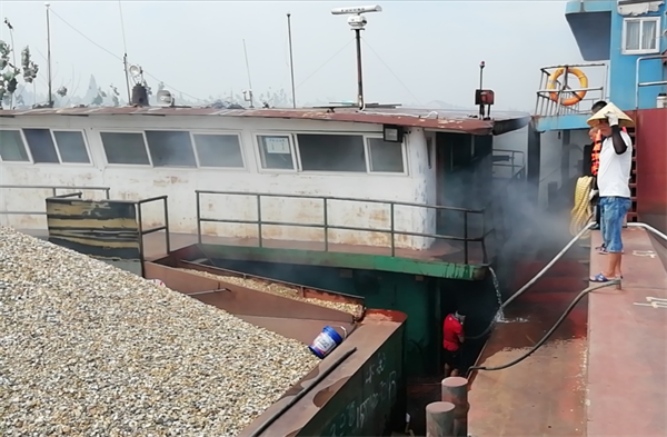 在火情现场,市交通运输综合行政执法支队与水运事务中心、消防部门及当地政府人员共同进行灭火施救。但由于起火系柴油起火,火势凶猛,江面上风又大,湘浏阳机0398驾驶台被烟雾整个包围。救火人员顶着浓烟,迅速铺设水带,穿好防护设备,开启消防泵,立马加入灭火行动中,救火人员抢占上风口,在保护自身安全的同时有效阻止了火势漫延,为后面赶来的八字哨政府毛角口航道站及八字哨派出所和赫山消防大队灭火赢得了宝贵时间。